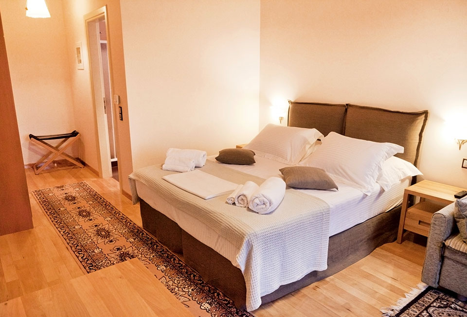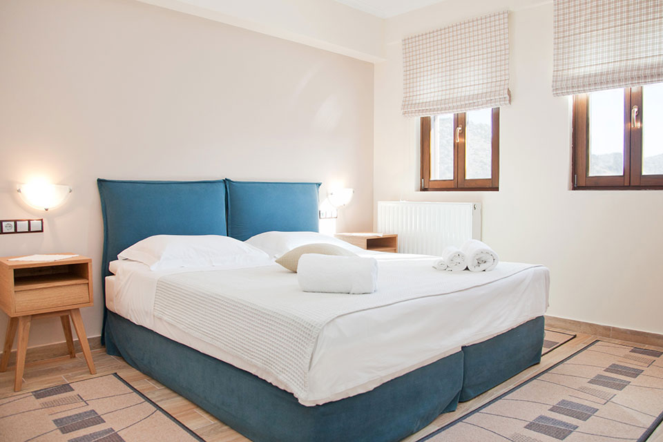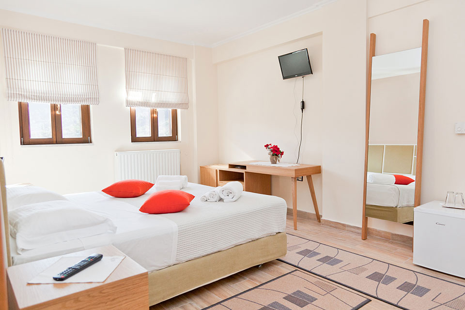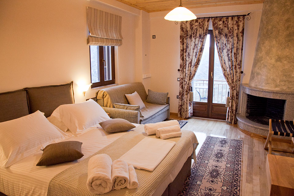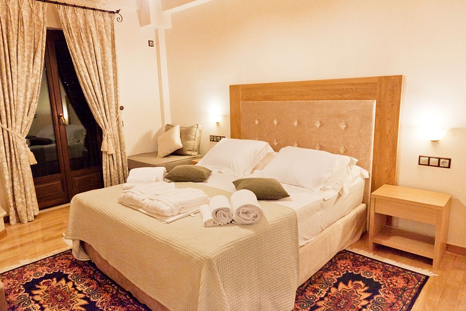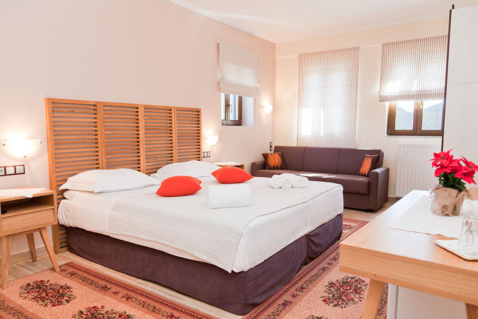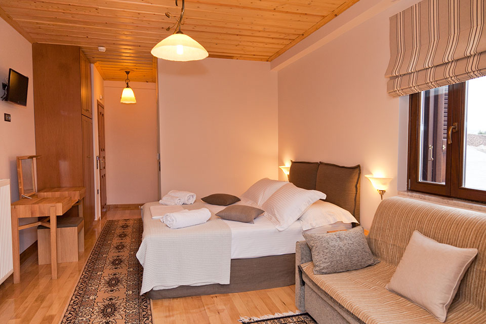 - Κεντρικό σαλόνι επισκεπτών με τζάκι και τηλεόραση