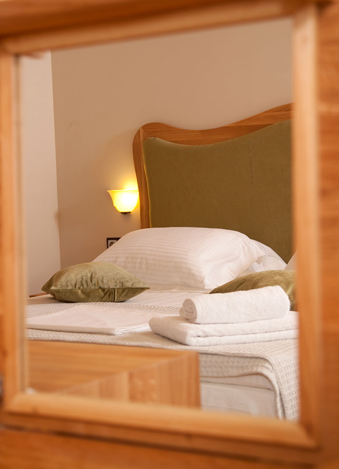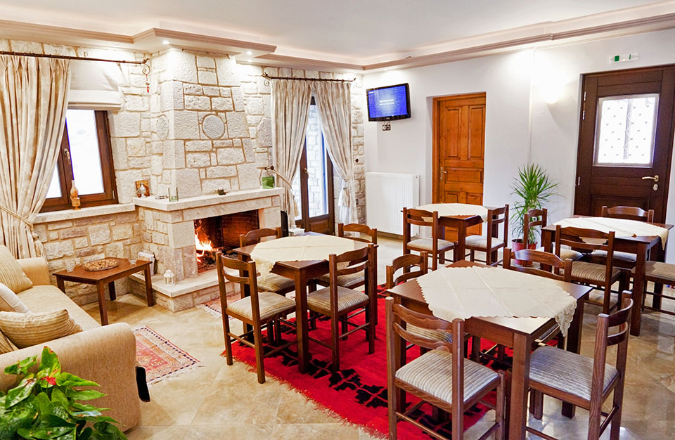 Στον κοινόχρηστο χώρο της σάλας σερβίρεται το πρωινό καθώς και καφές, παραδοσιακά αφεψήματα και γλυκά καθ' όλη τη διάρκεια της μέρας.Το πρωινό μας περιλαμβάνει σπιτικές και τοπικές απολαύσεις όπως: σπιτικό κέικ, σπιτικές μαρμελάδες, τοπικό μέλι, καφές, γάλα, φρυγανιές, δημητριακά, ζαμπόν, κασέρι, φρούτα,χυμό,βραστά αυγά, τοστ. Τους καλοκαιρινούς μήνες, οι εξωτερικοί χώροι είναι ιδανικοί για το παιχίδι των παιδιών ενώ διατίθενται και για κοινωνικές εκδηλώσεις.